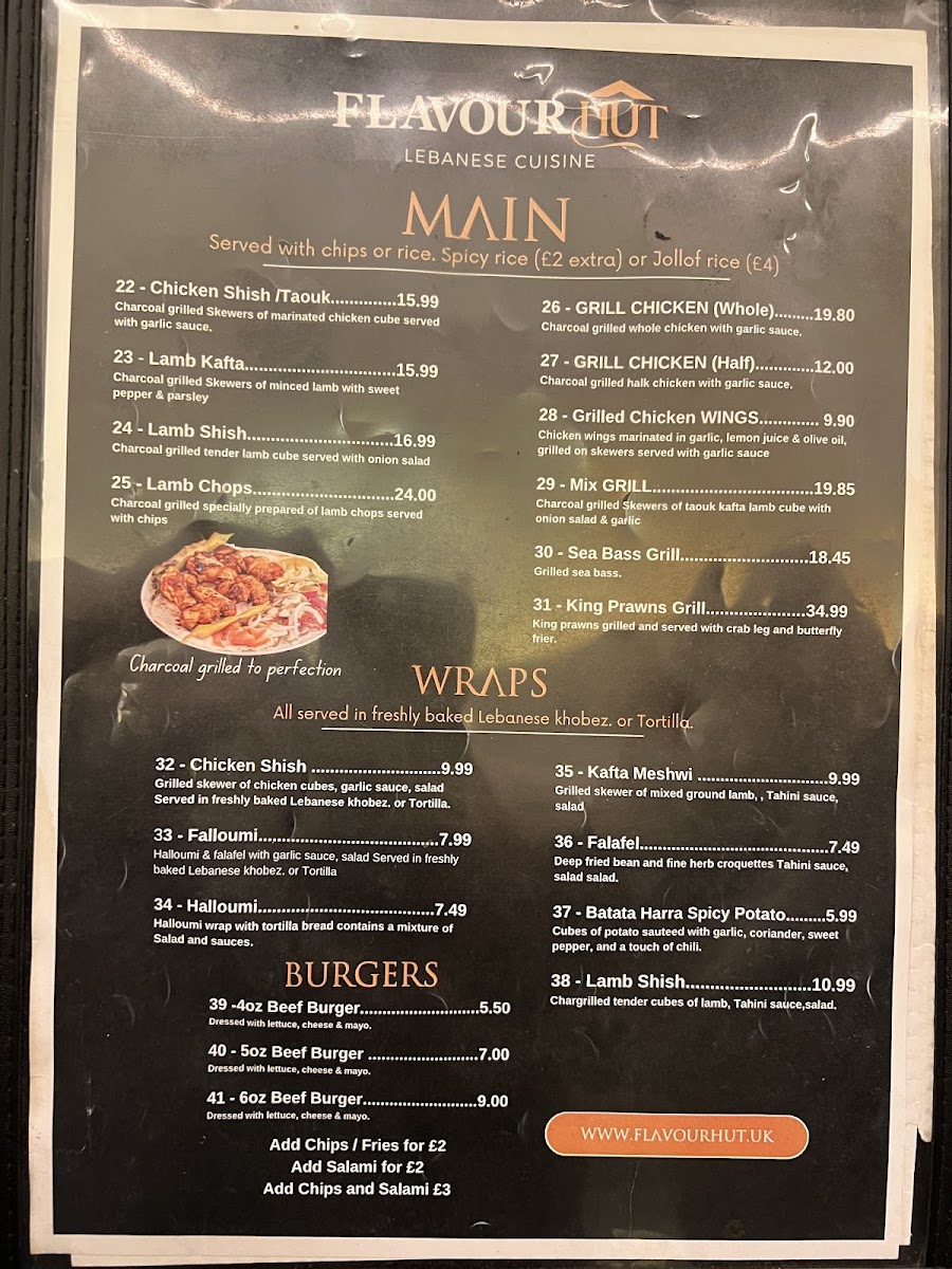 Flavour Hut combines a variety of dishes that cater to different tastes, with a focus on fresh ingredients and bold flavors. Whether you're in the mood for a satisfying meat dish, a light salad, or a refreshing drink, there's something on the menu for everyone.